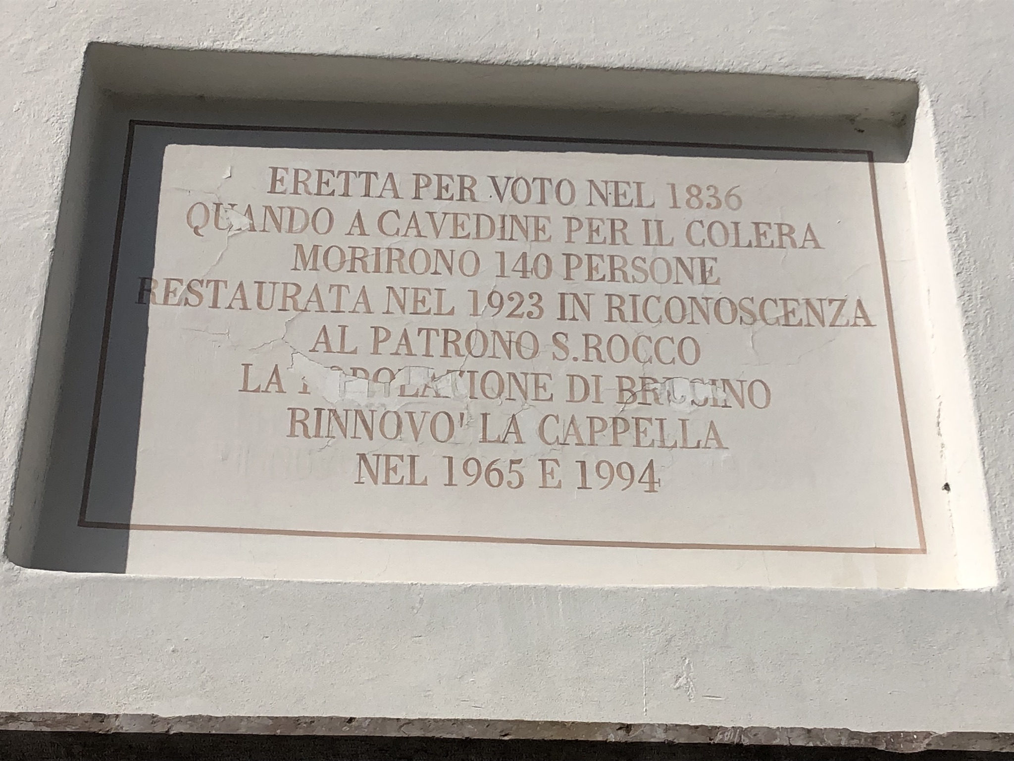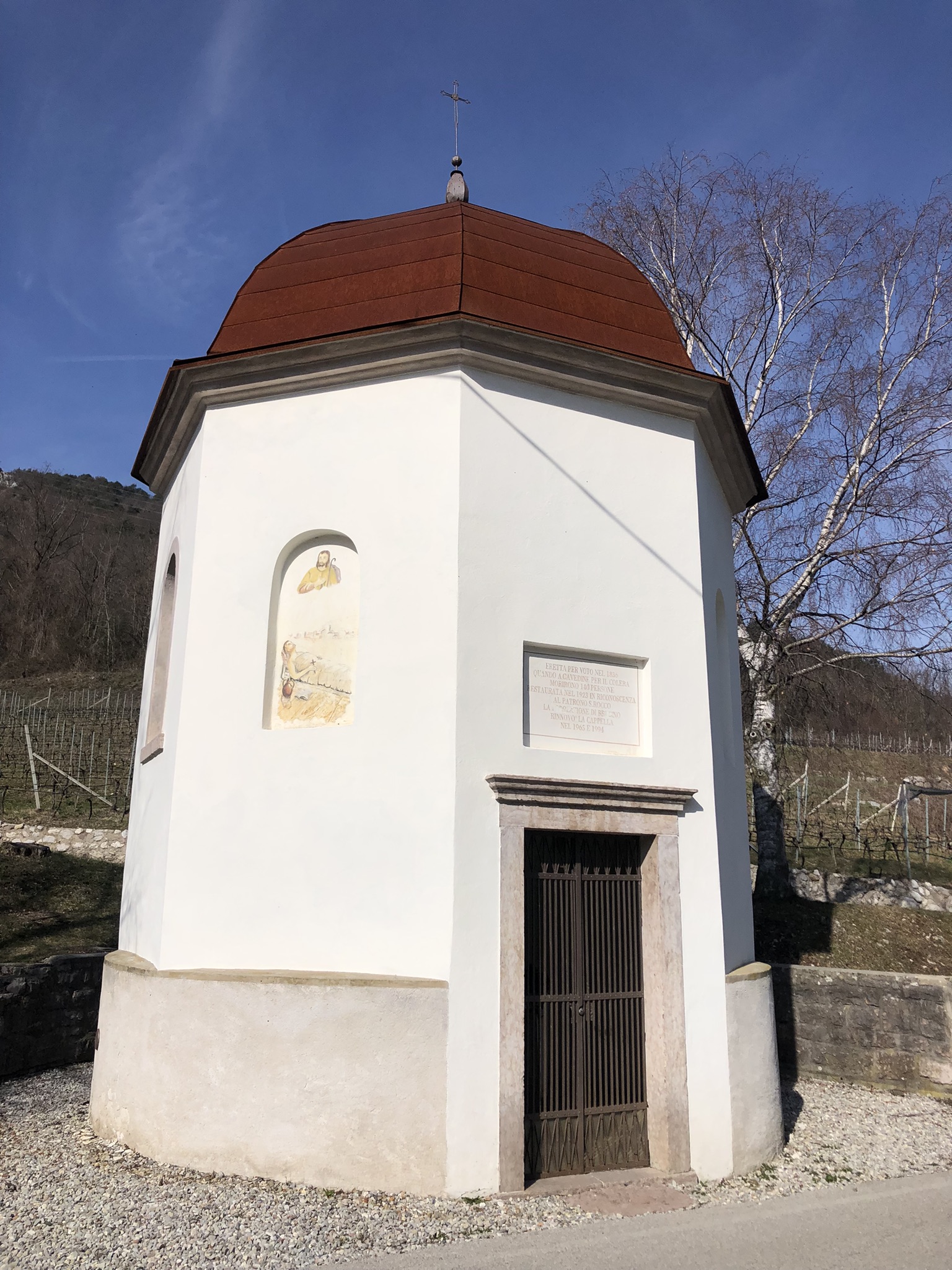 Cappella di San Rocco Esplorare Via Croseta, Brusino, Cavedine, 38073, (TN) Save Descrizione Mappa Galleria Descrizione La cappella di San Rocco si trova a Brusino in valle di Cavedine. La cappella eretta per voto nel 1836 quando a Cavedine per il colera morirono 140 persone. Restaurata nel 1923 in riconoscenza al patrono San Rocco. Mappa Mappa Indicazioni Galleria Close Informazioni Indicazioni Via Croseta, Brusino, Cavedine, 38073, (TN) Servizi Cultura Storia Parole Chiave Brusino Cappella di San Rocco Colera 1836 culto Cerca nelle vicinanze Ammirare Dormire Mangiare e Bere Shop / Servizi Mostra tutto